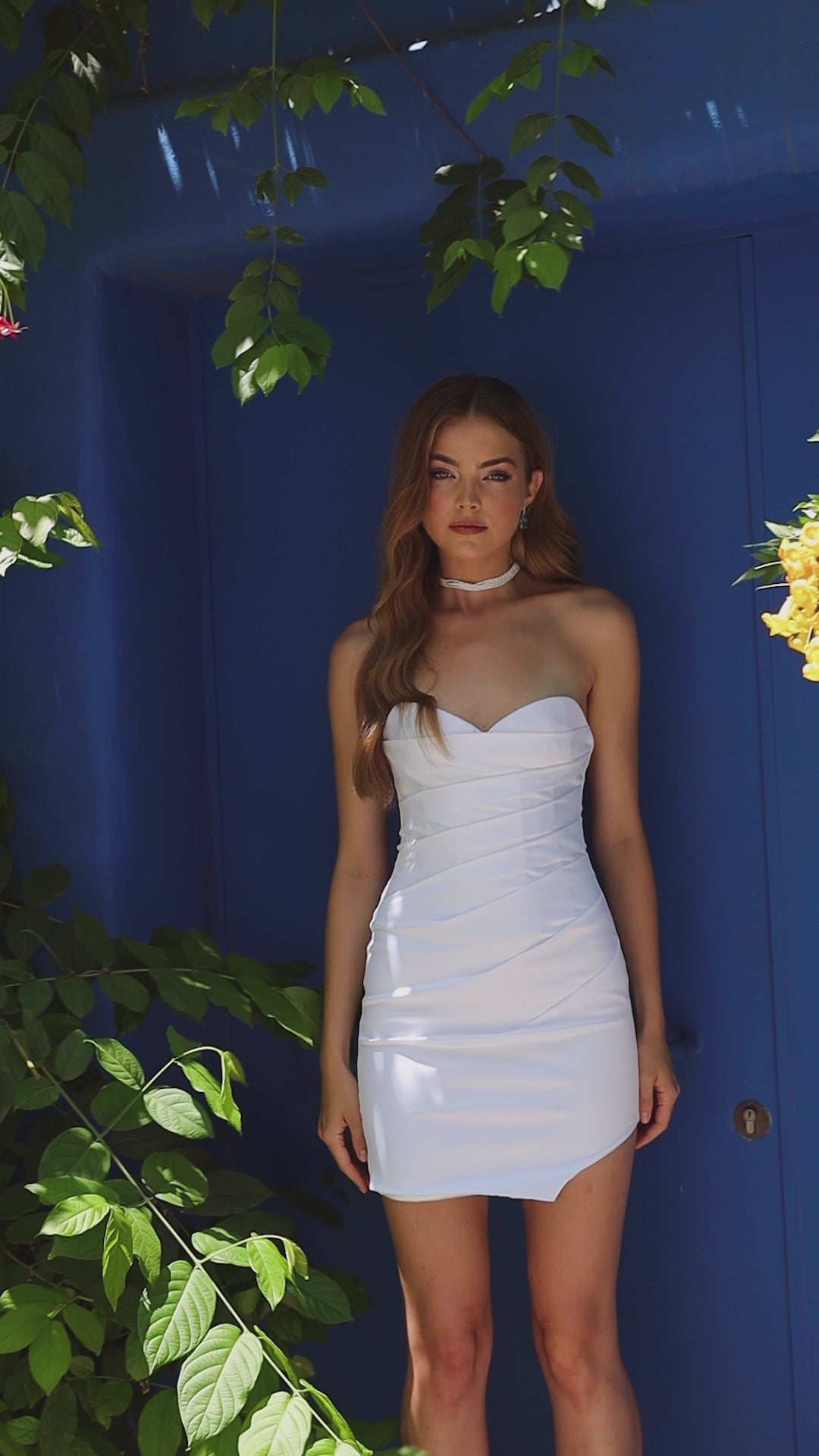 Corset Mini Dress Double Satin Cloth, Short with Small Leg Cleft