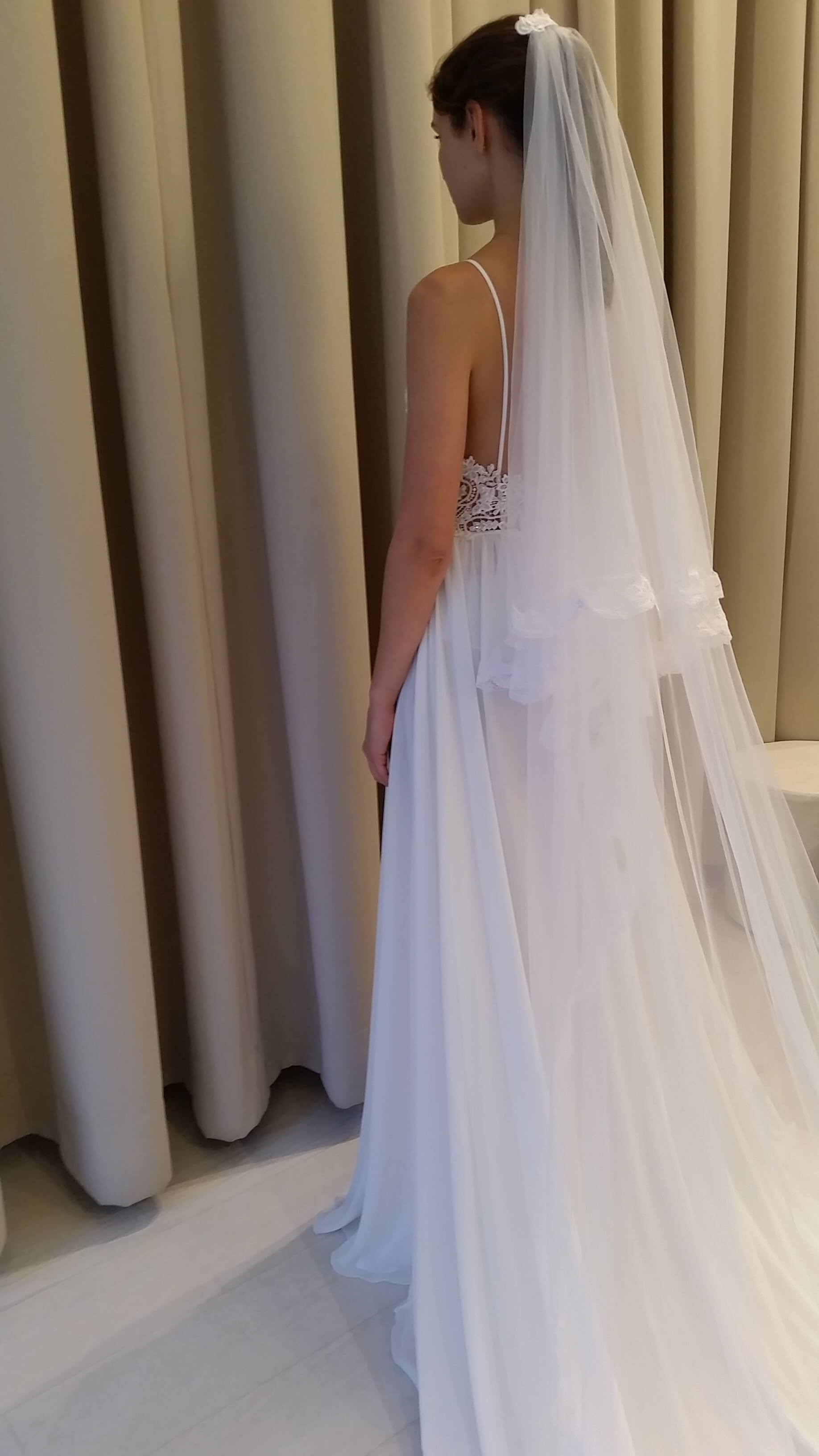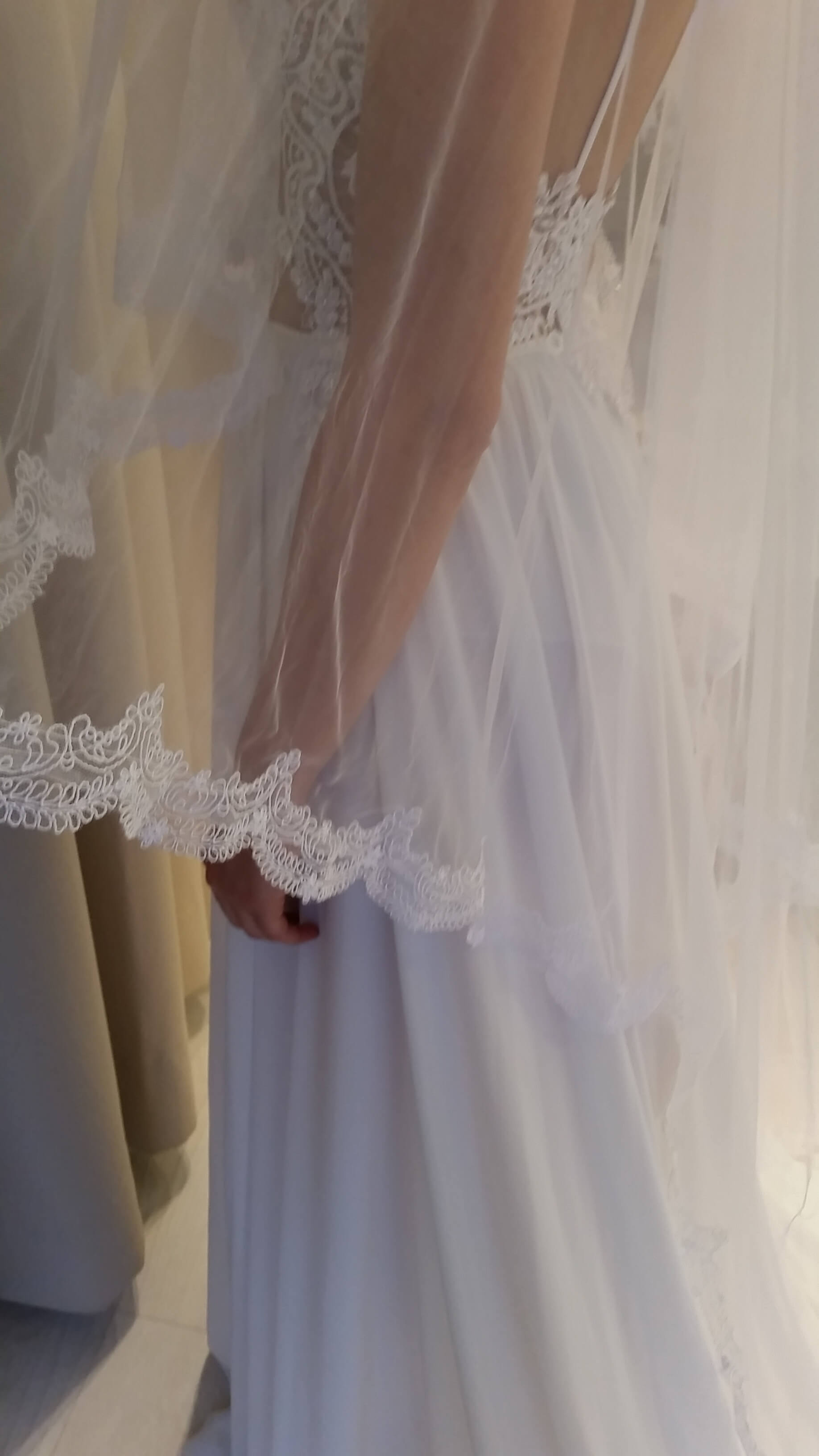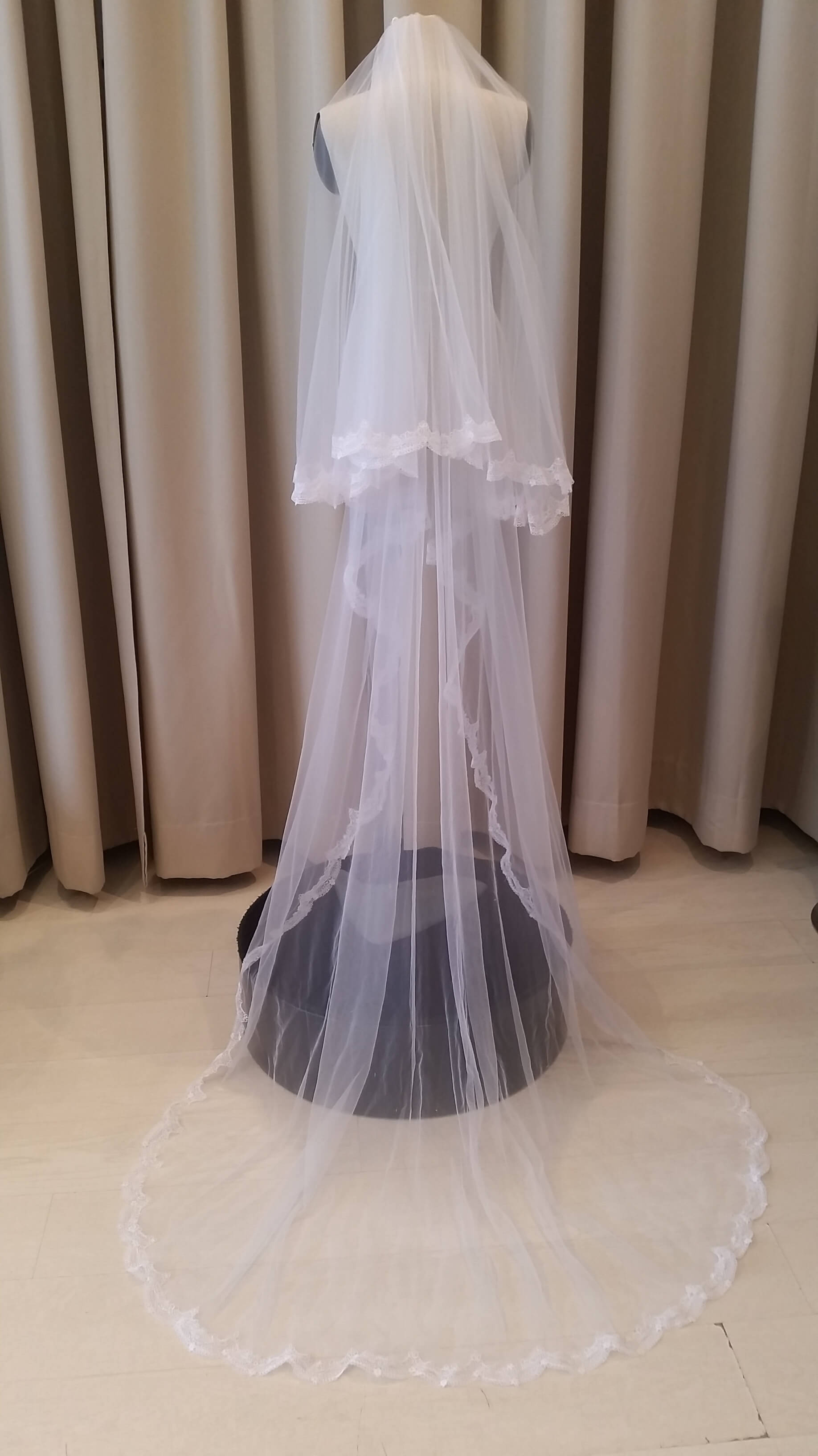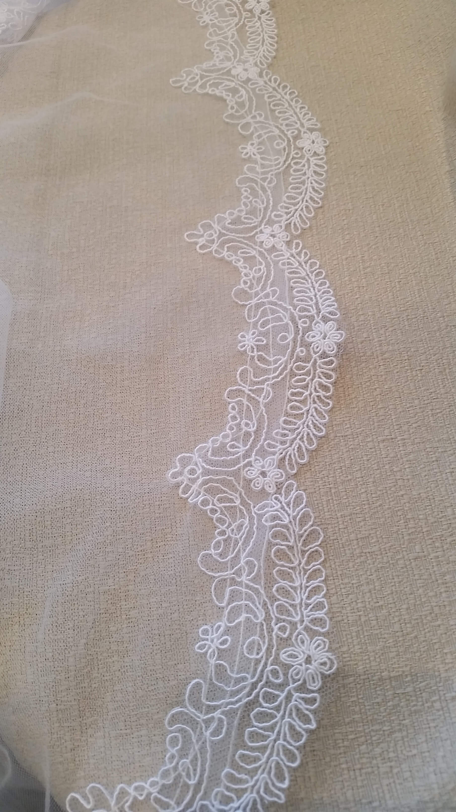 Ivory 2 tier tulle & Lace veil from Julie Vino bride collection.