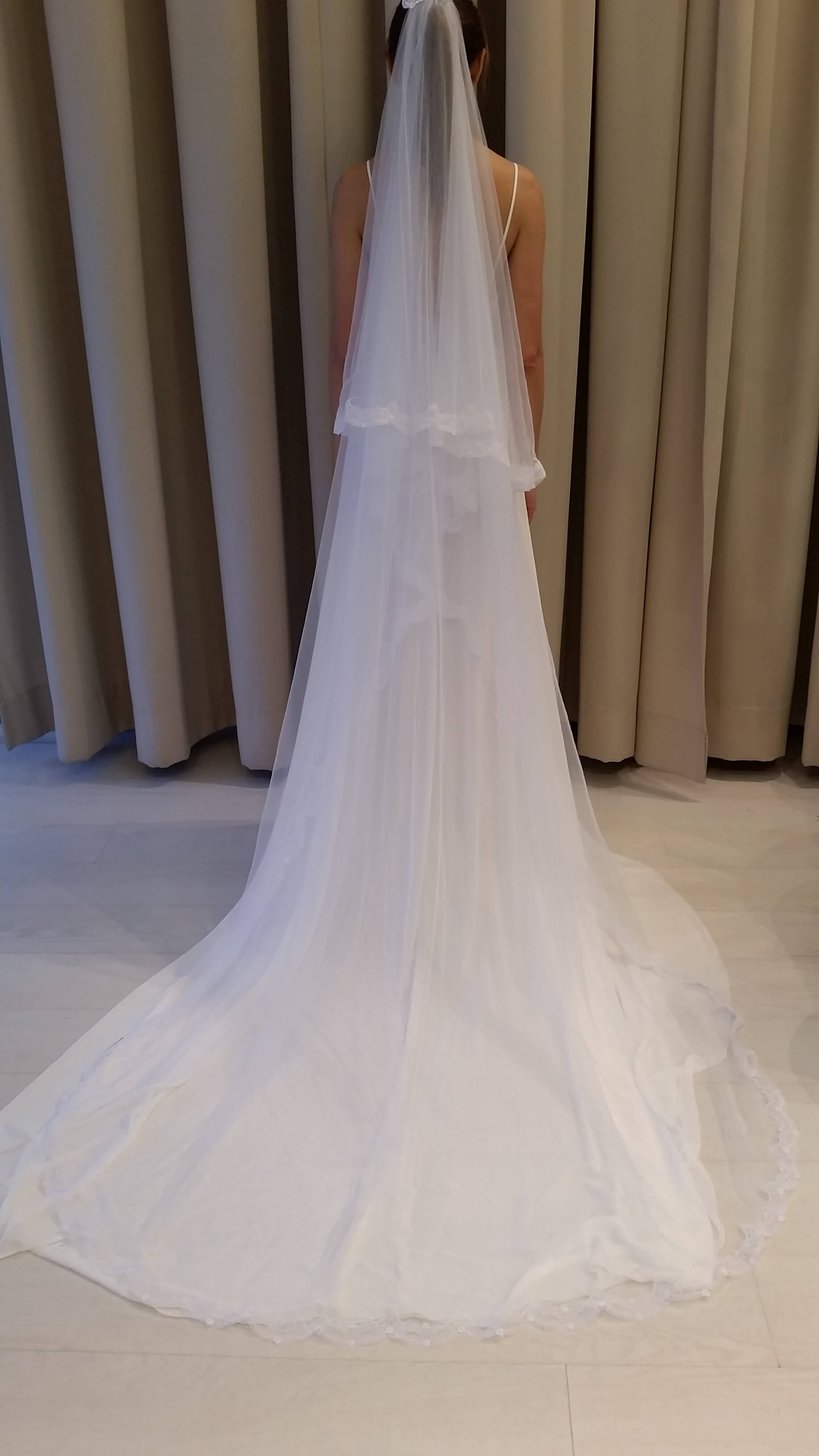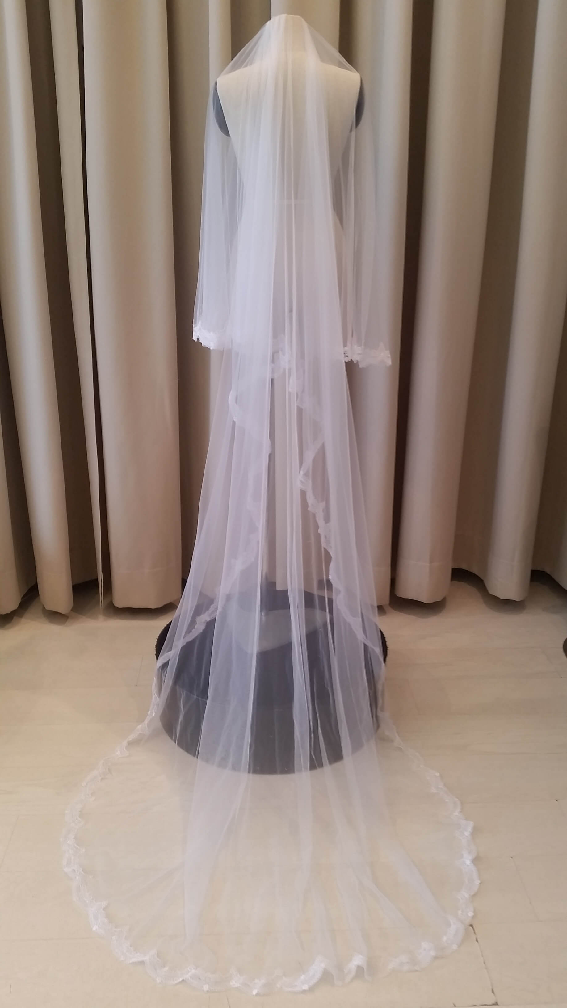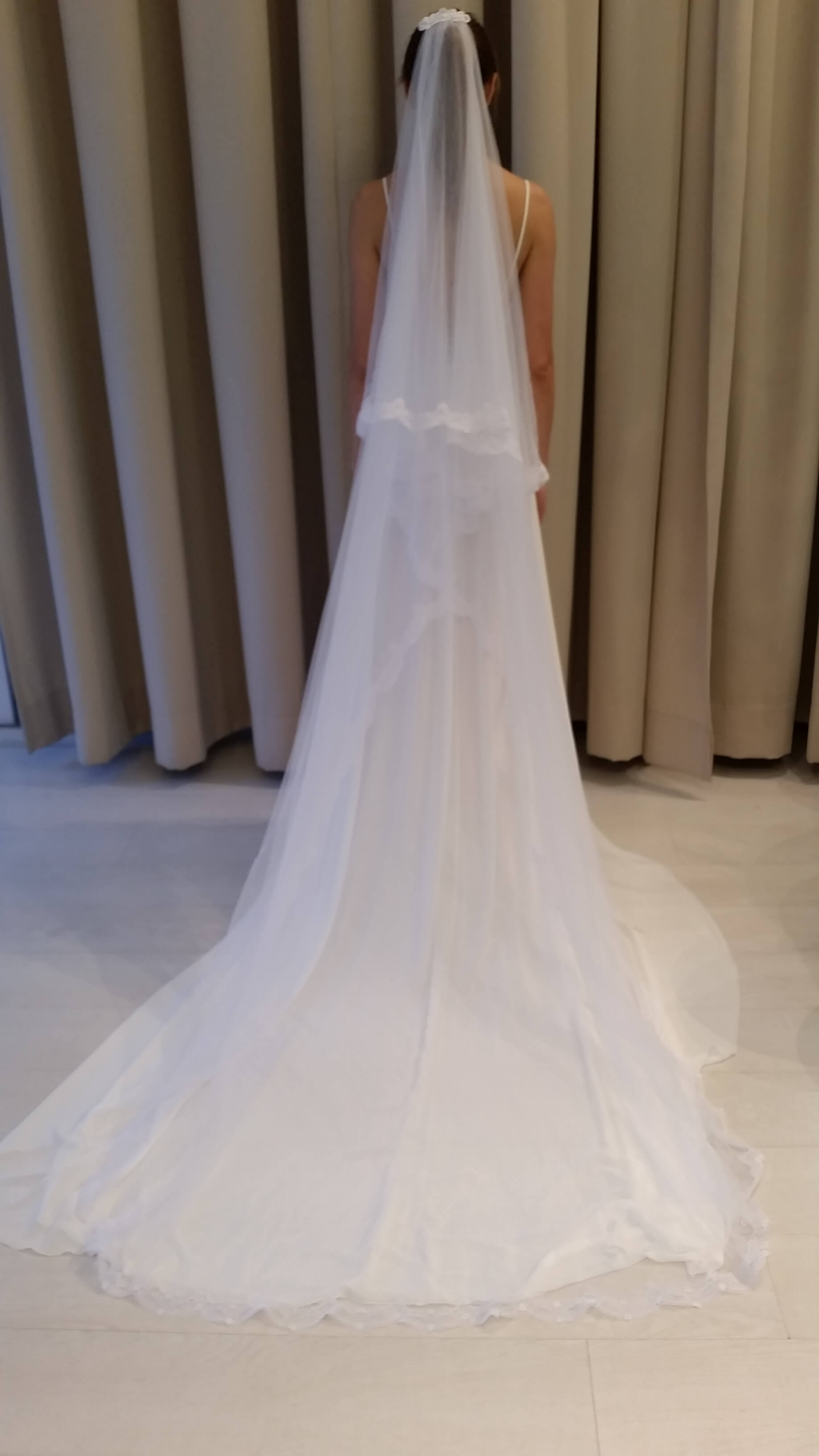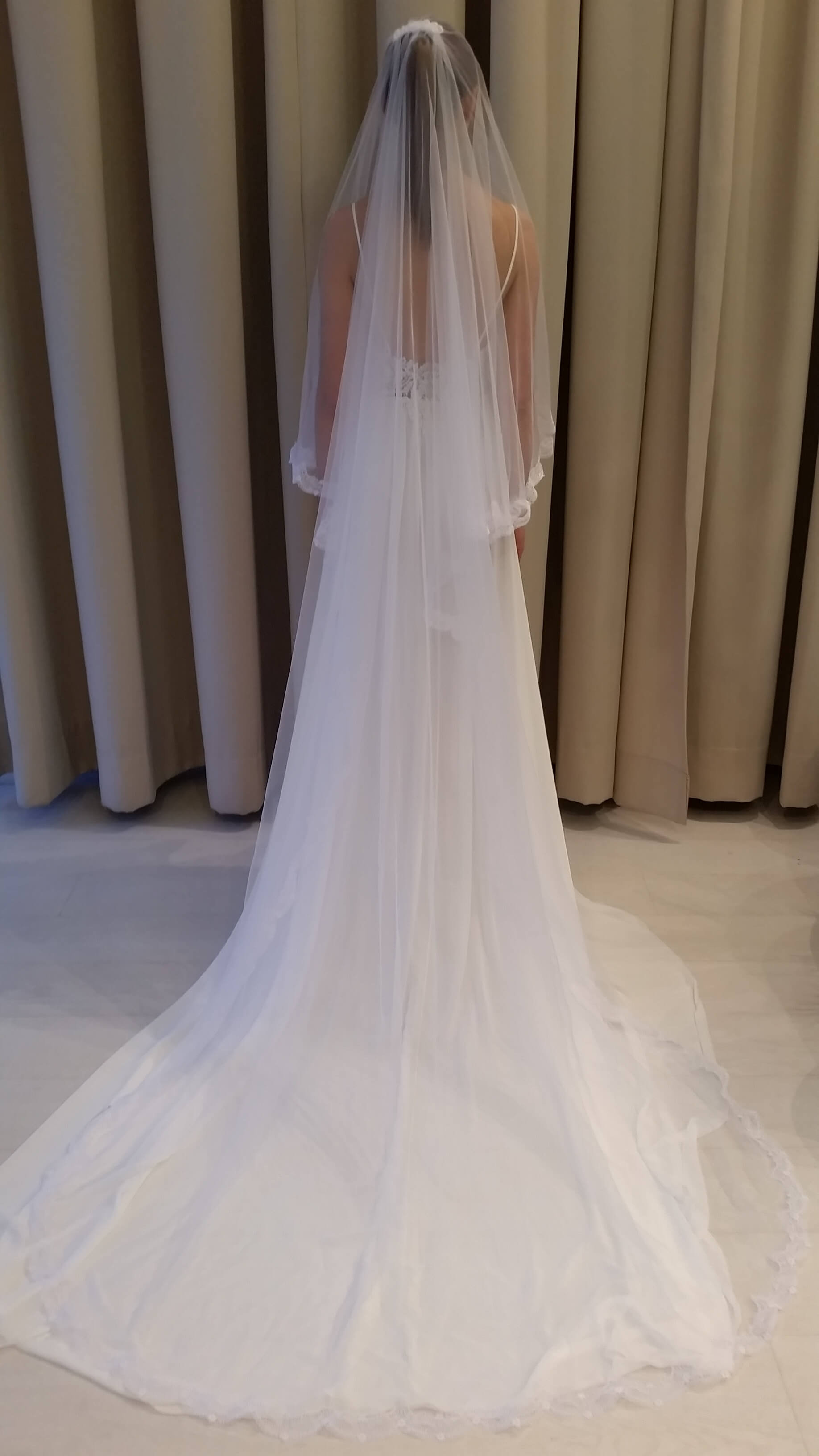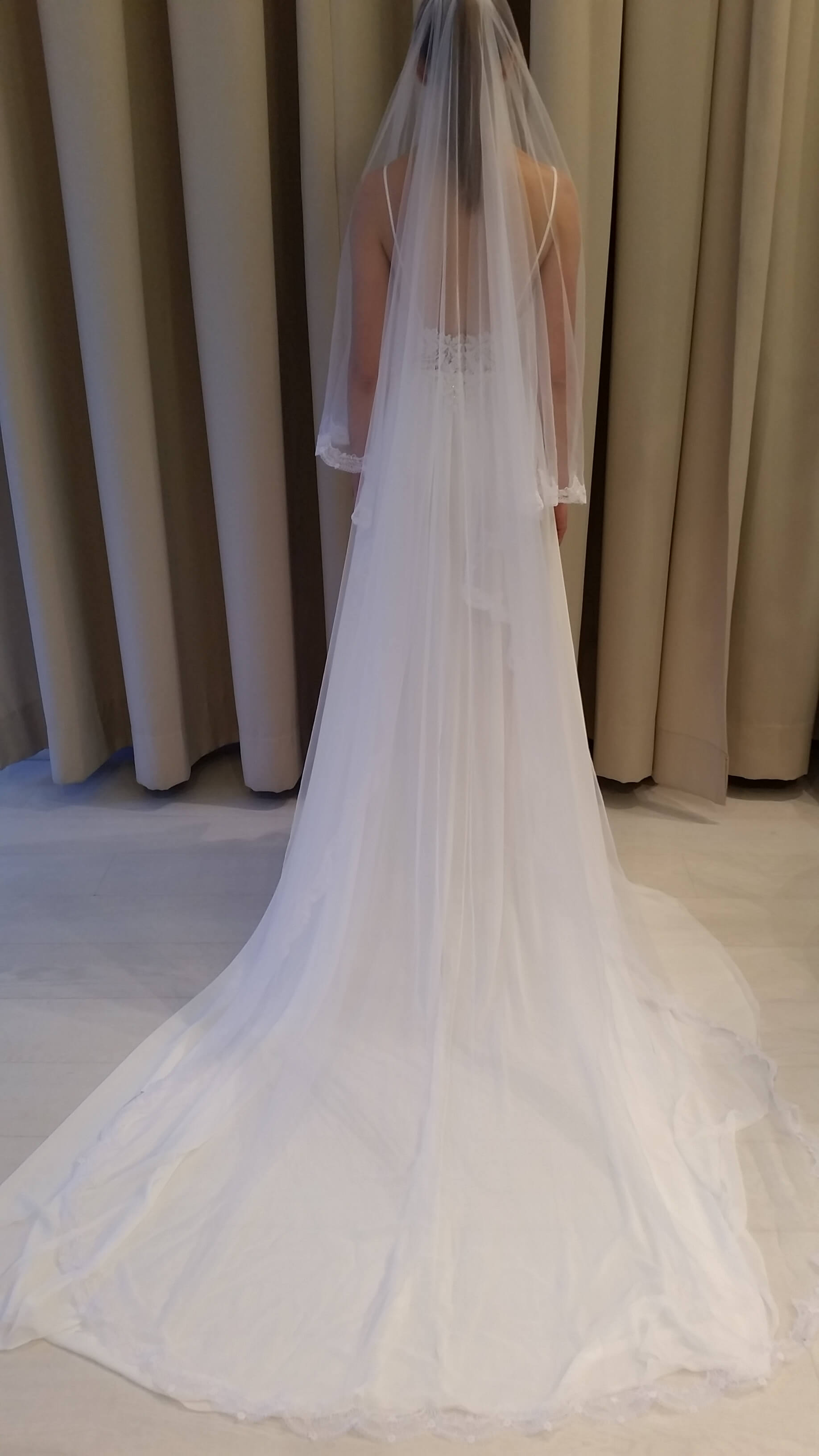 Ivory 2 tier tulle & Lace veil from Julie Vino bride collection.