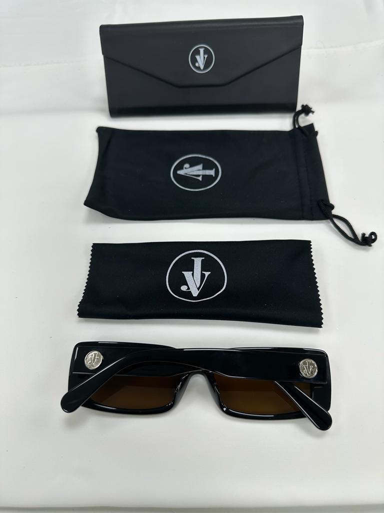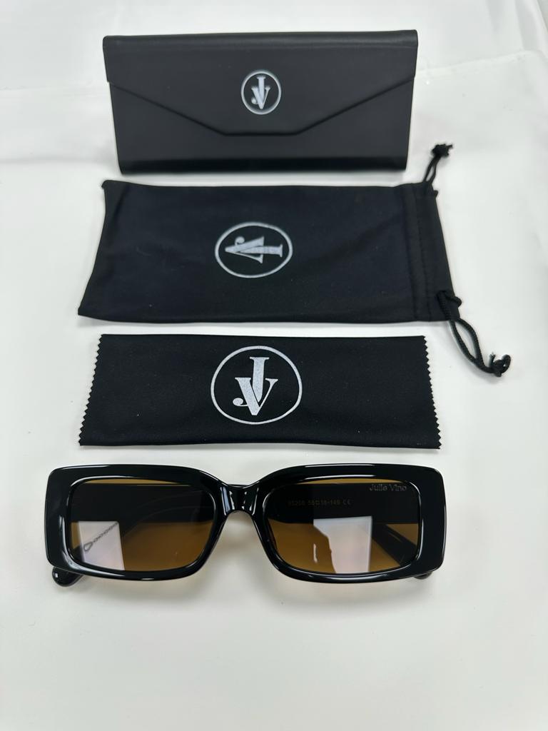 Julie Vino sunglasses featuring a black plastic frame and brown lenses evoke a sense of timeless sophistication with a touch of warmth. The black frame delivers a sleek and versatile look, while the brown lenses infuse a subtle richness and complement the overall design. Brown lenses often provide excellent color contrast and depth perception while offering effective protection against glare and UV rays.